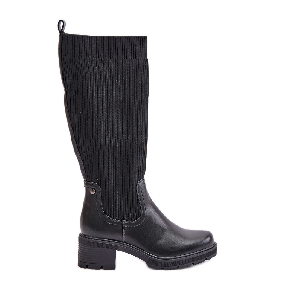 Details: Slip-on Boots With Elastic Upper Above The Knee Black Vaimi
