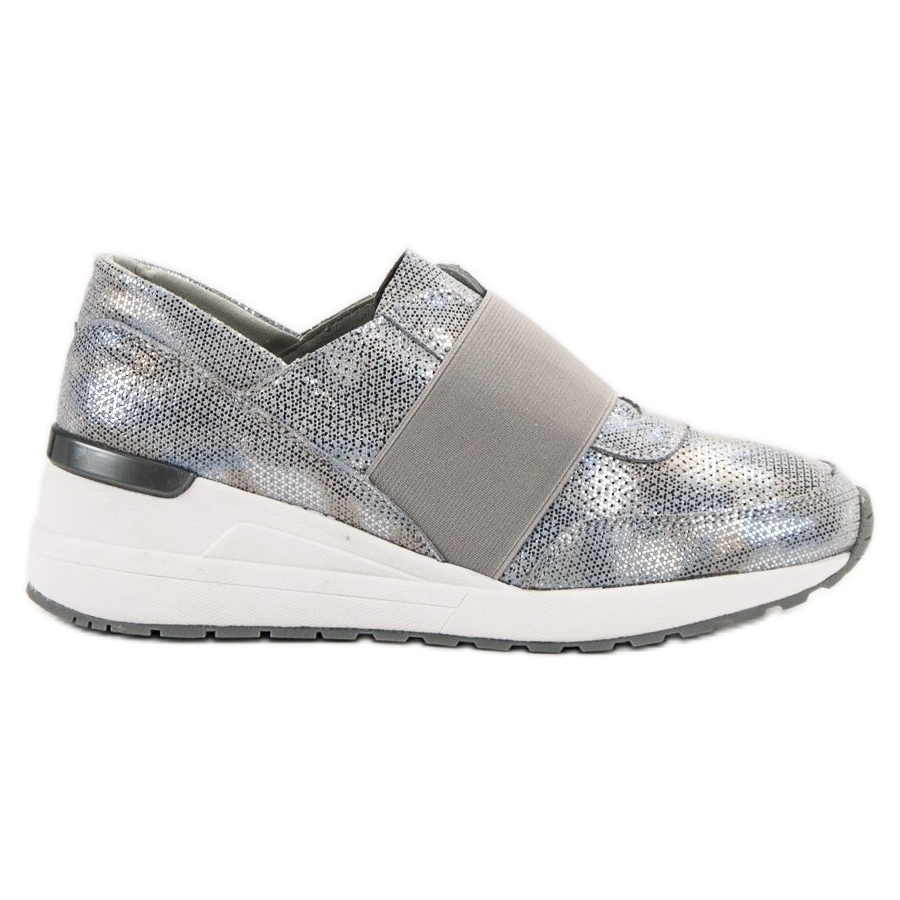 Made of high-quality genuine leather with a silver, shiny finish, they attract attention and give every style a unique character. A soft, closed heel and a 5-centimeter platform with a tread ensure comfort when worn for long hours, making them an ideal choice for any occasion.