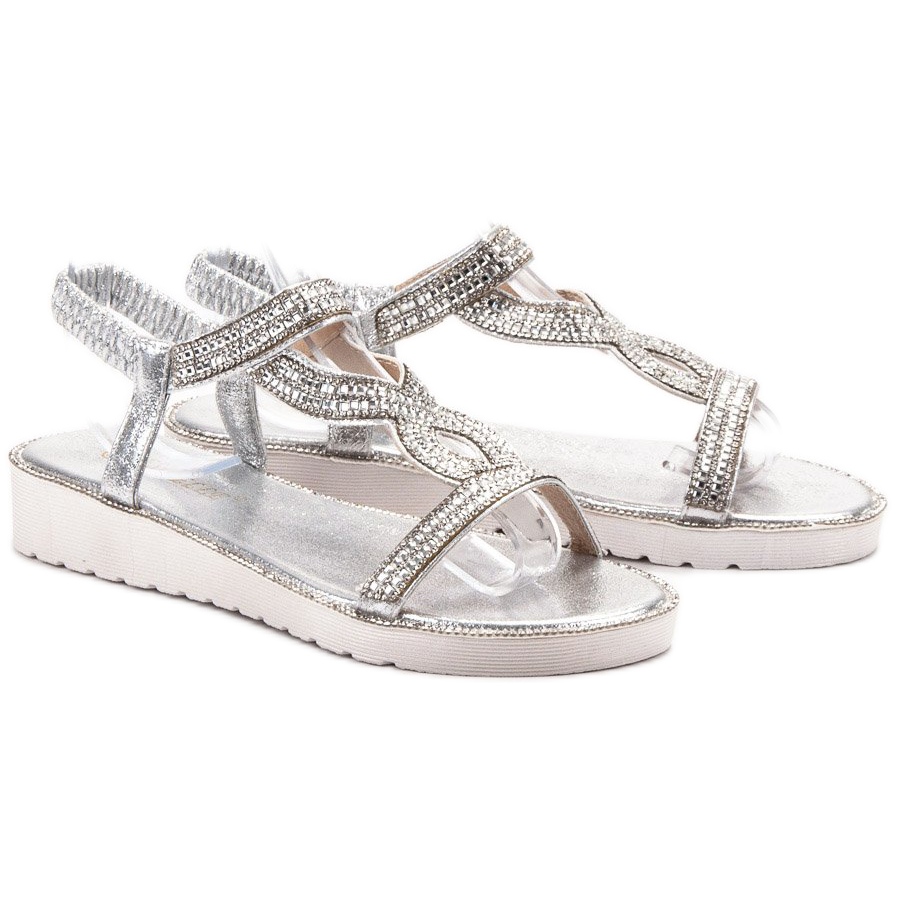 Bestelle Slip-on Platform Sandals in grey are a great choice for women who want to add a bit of sparkle to their styling. These spectacular sandals, decorated with zircons and rhinestones, attract attention not only with their modern design, but also with their subtle comfort of wearing.