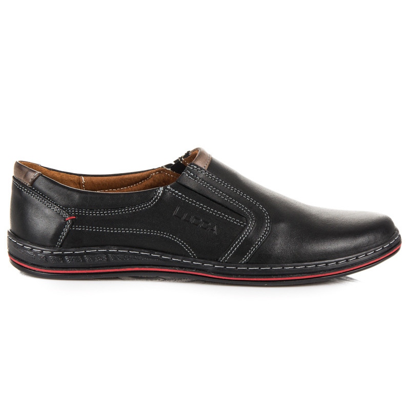 Elegant slip-on black leather Lucca shoes are a great choice for the modern man who appreciates classic style combined with comfort. Made of the highest quality natural leather, both the outer part of the shoe and the insole provide not only an aesthetic appearance, but also comfort of wearing all day long.