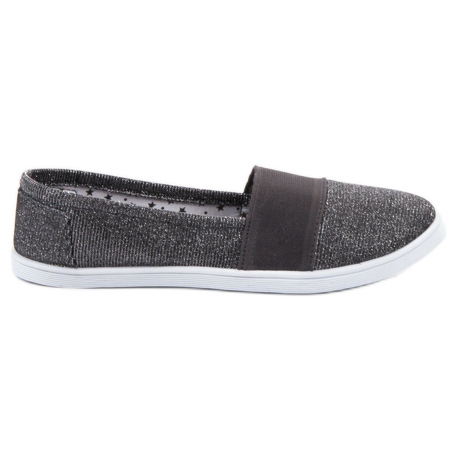 SHELOVET Slip-On Glitter Sneakers in grey are a great choice for all fashion lovers who value comfort and style. These charming shoes, equipped with shiny, silver threads, perfectly fit into spring-summer trends, adding shine to every styling.