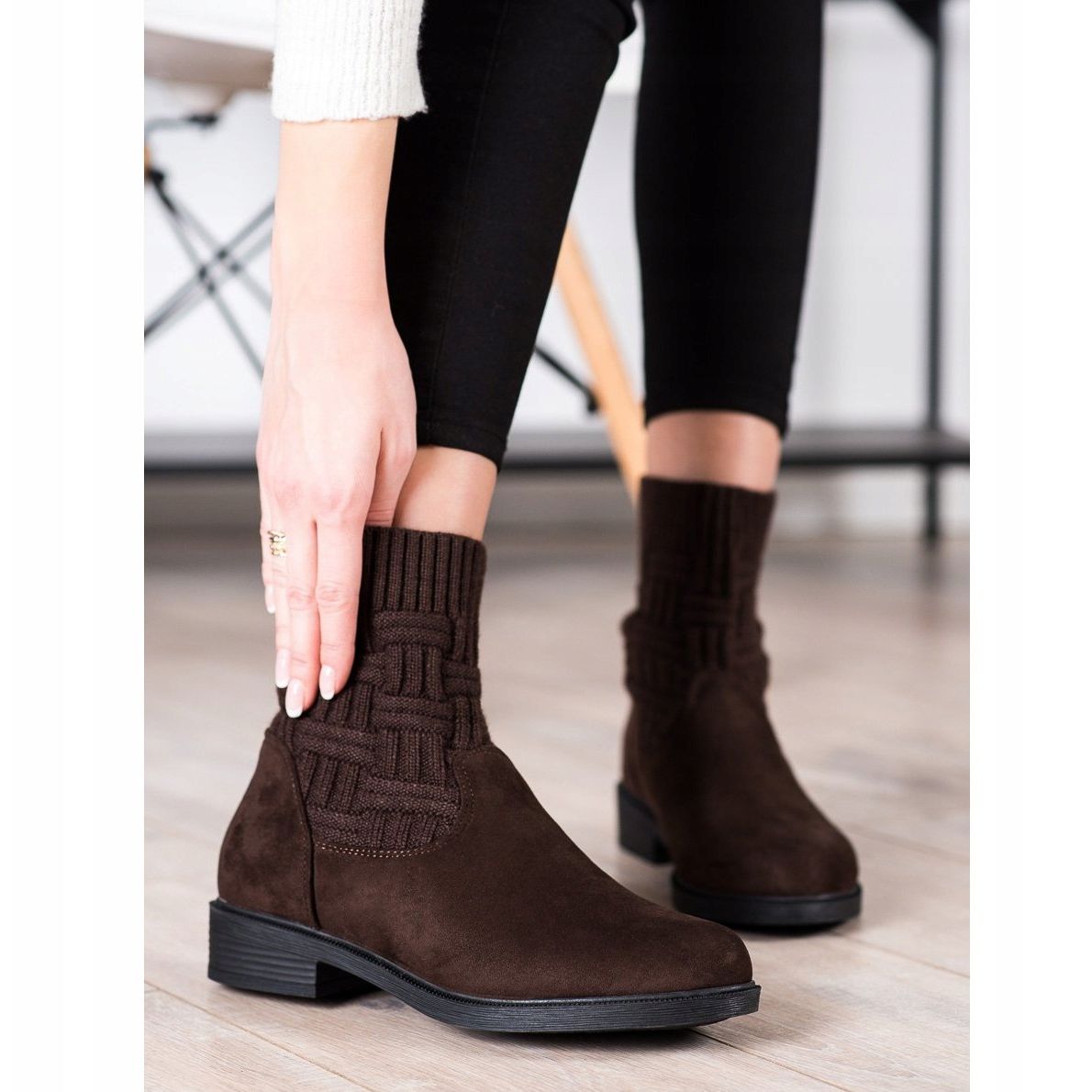 Made of material imitating suede, the boots impress with their simplicity and elegance, and the brown color perfectly matches many styles. Thanks to the rounded toe and soft heel, the footwear provides comfort of wearing all day long.