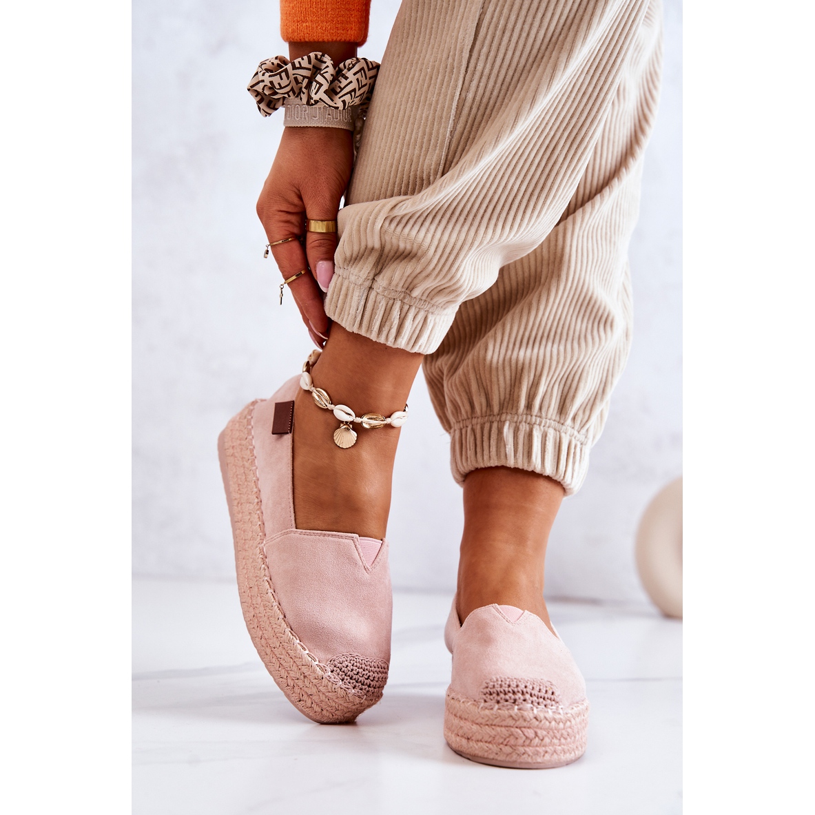 Discover the latest hit among summer fashion accents - pink slip-on espadrilles FB2. Made of high-quality eco-suede, these amazing espadrilles stand out not only for their elegant appearance, but also for their extraordinary comfort. The soft material insole with an eco-leather heel cup means that your feet will enjoy comfort all day long.