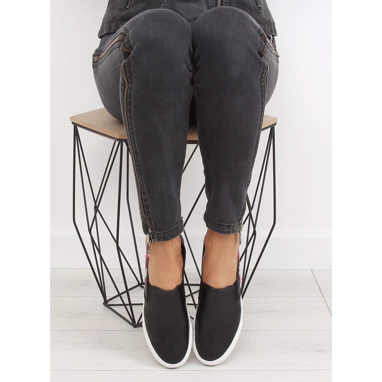 Inna marka Slipons with delicate black embroidery g1204a Black