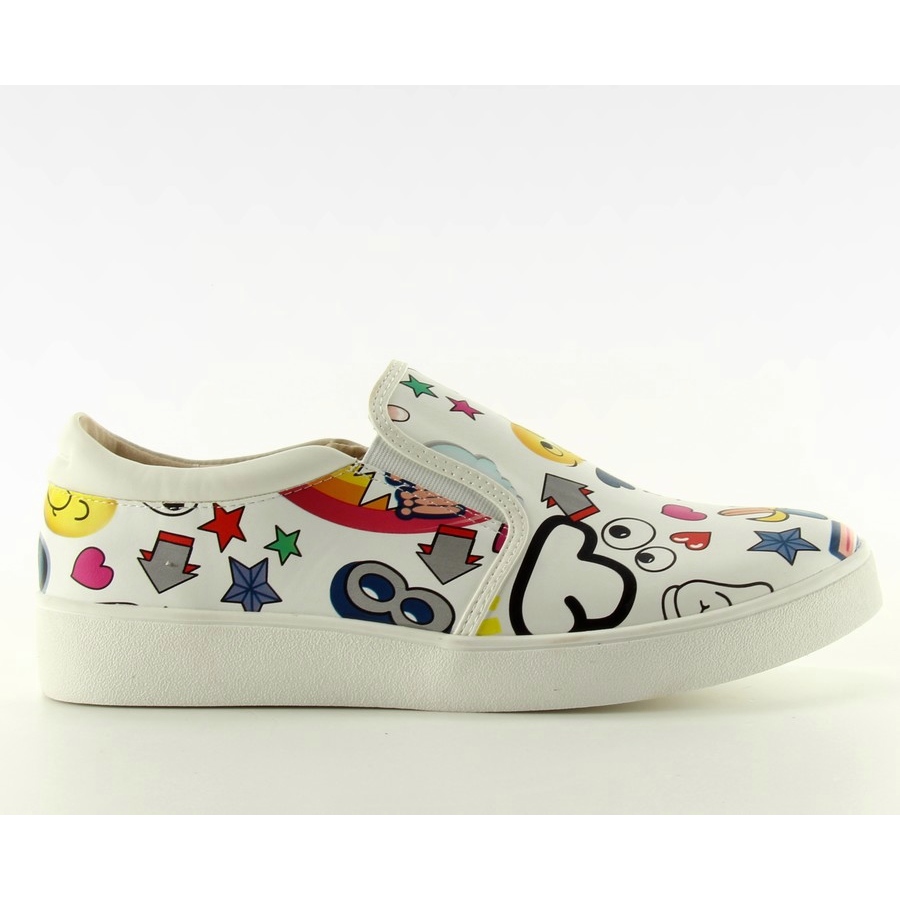 Colorful slip-on sneakers with an original, comic book pattern that immediately attract attention. Made of full-grain ecological leather, the interior is lined with soft fabric, and the comfort of use is increased by a natural leather insert. Low, with a round toe and a 3 cm high flat sole - light, comfortable and extremely stylish.