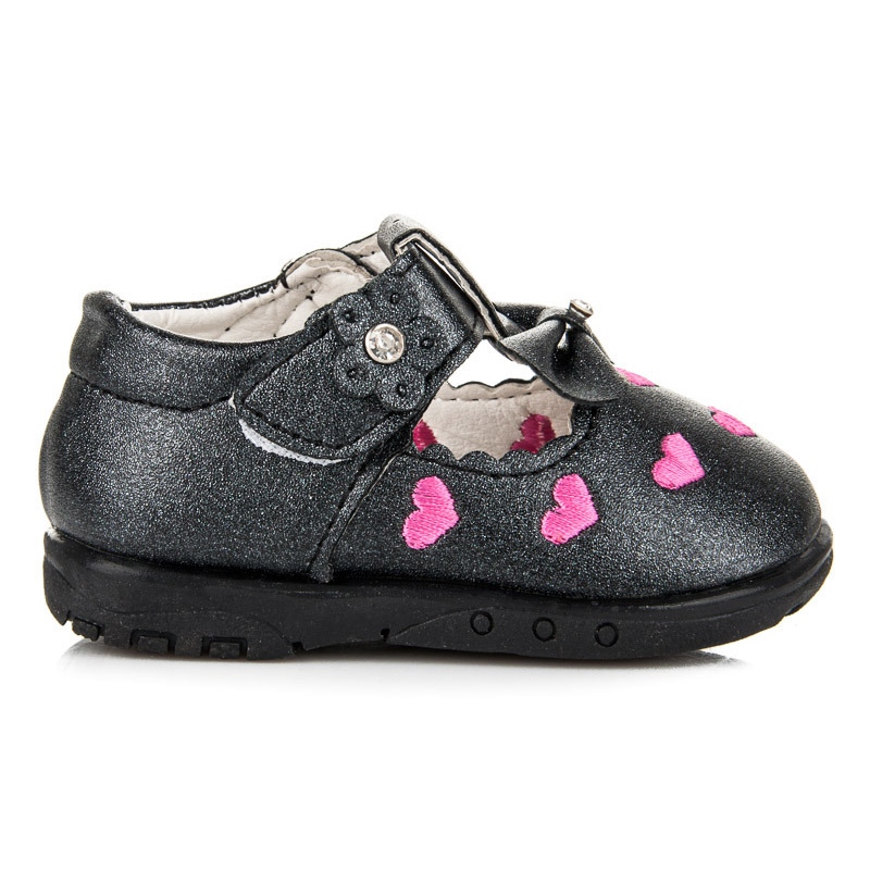 Black hearts with hearts are cute and practical ballerinas created for the youngest. Made of ecological leather, perfect for the spring/summer season. A delicate bow gives them girlish charm, and the Velcro fastener makes it easier to put on and remove even young children.