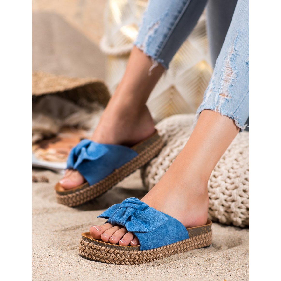 The stable 4 cm high sole, made of plastic with a tread, provides adequate grip and cushioning during everyday walks. The flip-flops have been enriched with a subtle bow, which adds charm to them and makes them an irreplaceable element of the spring-summer wardrobe.