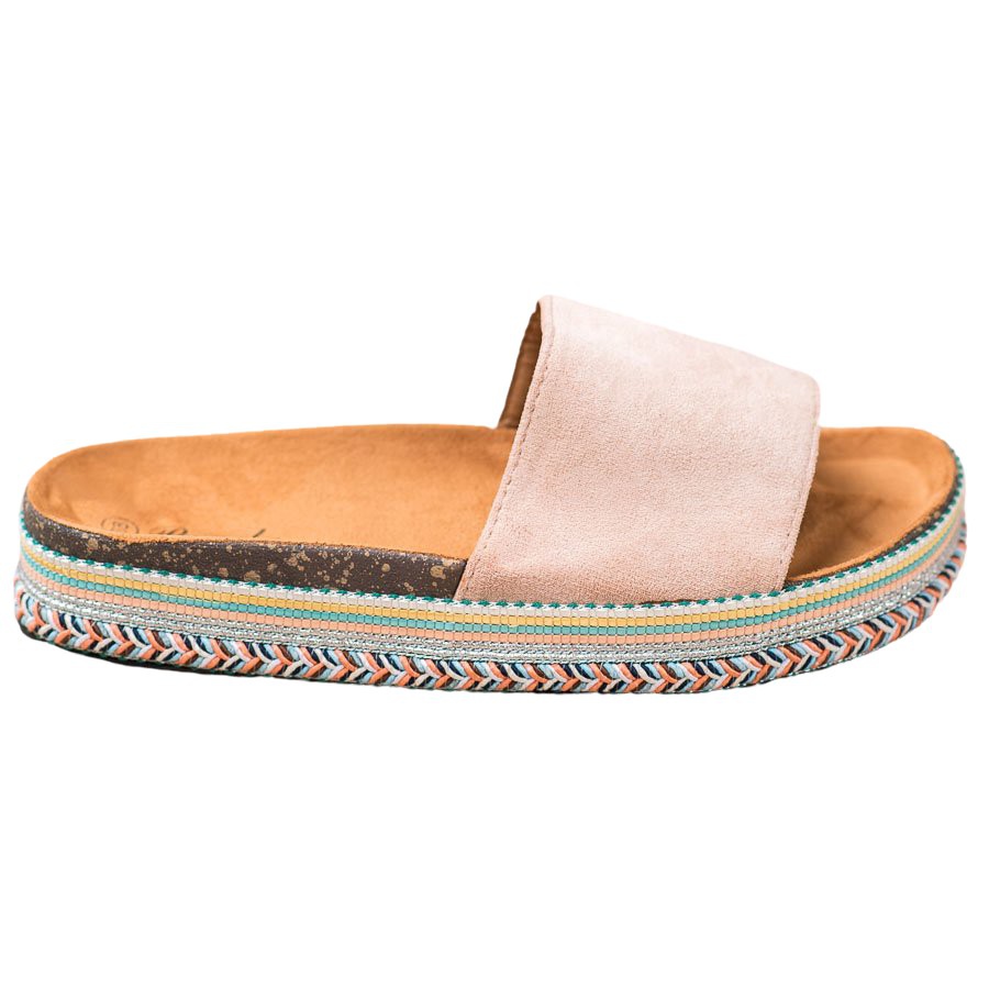 Renda flip-flops have a platform height of 3.5 cm, which provides excellent support for the feet. The upper of the shoes is made of ecological imitation suede, and the inner lining combines textile and leather elements, which translates into comfort of wearing them. The synthetic sole with tread will take care of stability on various surfaces.