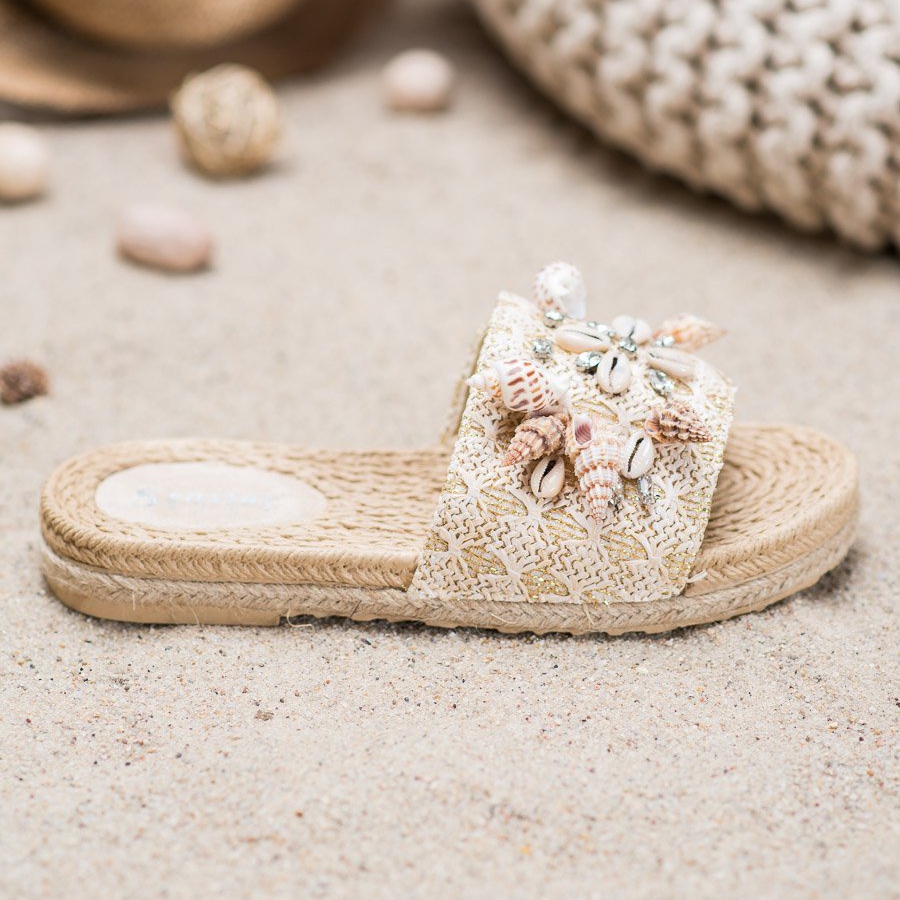 Details: Seastar Slippers On The Platform With Shells beige