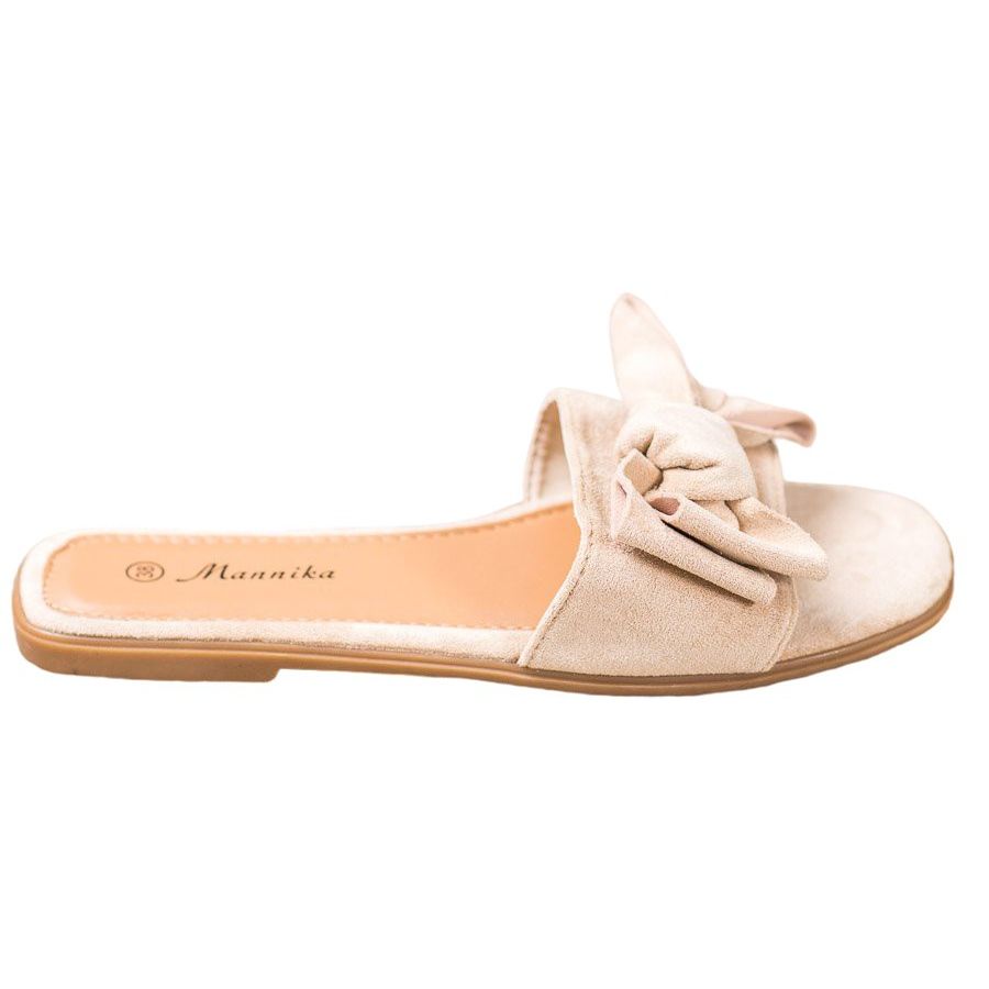 Discover the elegance and comfort offered by brown bow-tied flip-flops from the renowned Mannika brand. These stylish shoes are an ideal choice for women who value classic, yet casual solutions in everyday styling. Made of ecological imitation suede, the flip-flops provide not only a fashionable look, but also comfort of wearing.