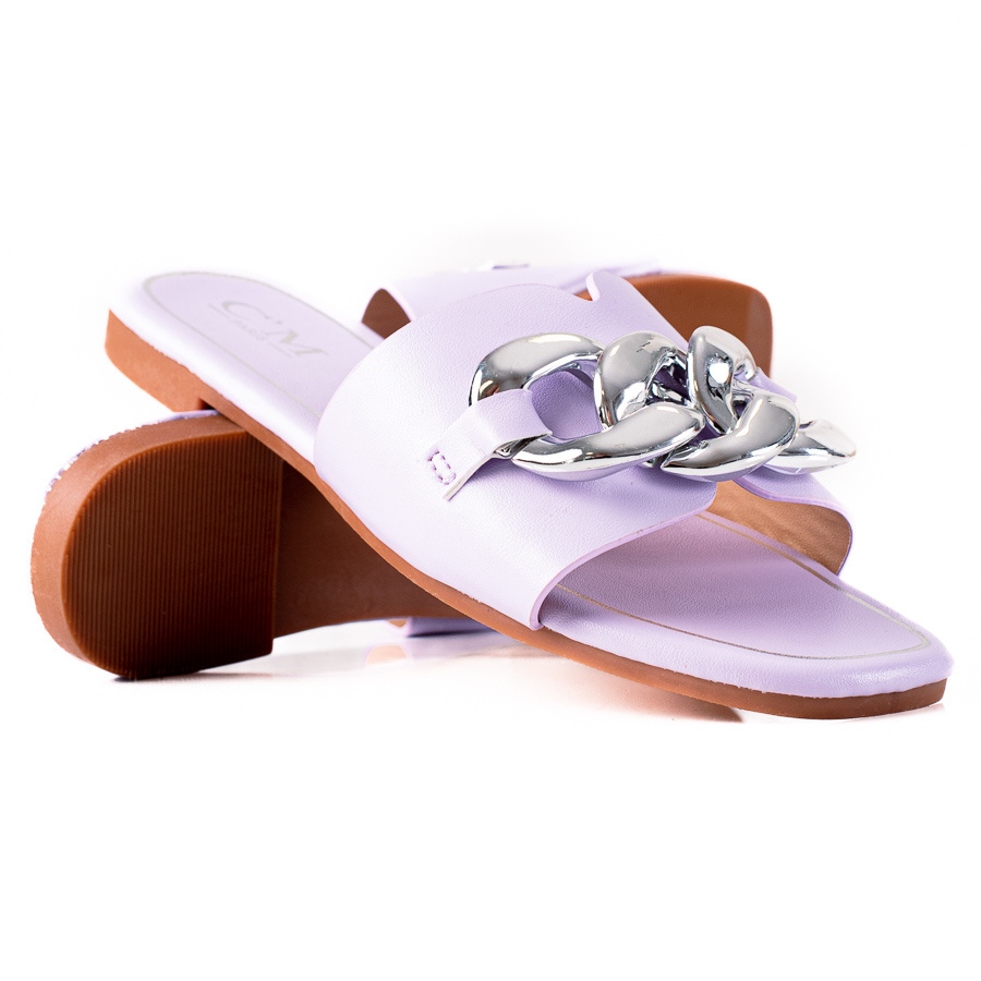 Discover comfort and style with the SHELOVET chain slippers in an intense purple color. These elegant slippers are the perfect choice for spring and summer, perfectly fitting into everyday style. Thanks to the slip-on fastening and open heel, wearing them is a pure pleasure - just slip your foot in to feel the comfort.