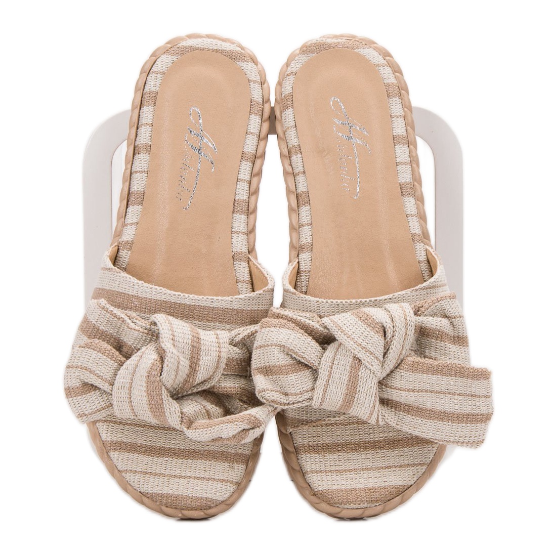 Discover the incredibly stylish SHELOVET flip-flops with a brown bow, which will perfectly fit into summer, boho stylings. These charming flip-flops are a great choice for women looking for comfort and elegance every day. The flat sole, made of synthetic material, imitates the weave of a thick rope, adding a nautical character to the footwear.
