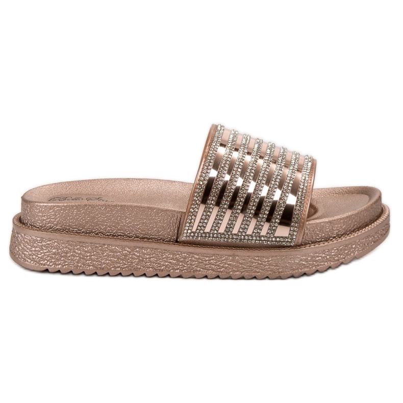 Made of high-quality eco-leather, these flip-flops look elegant and modern. A stylish accent in the form of crystals adds shine and originality, making them sure to catch the eye. The open heel and slip-on construction guarantee ease of purchase and comfort of wearing all day long.