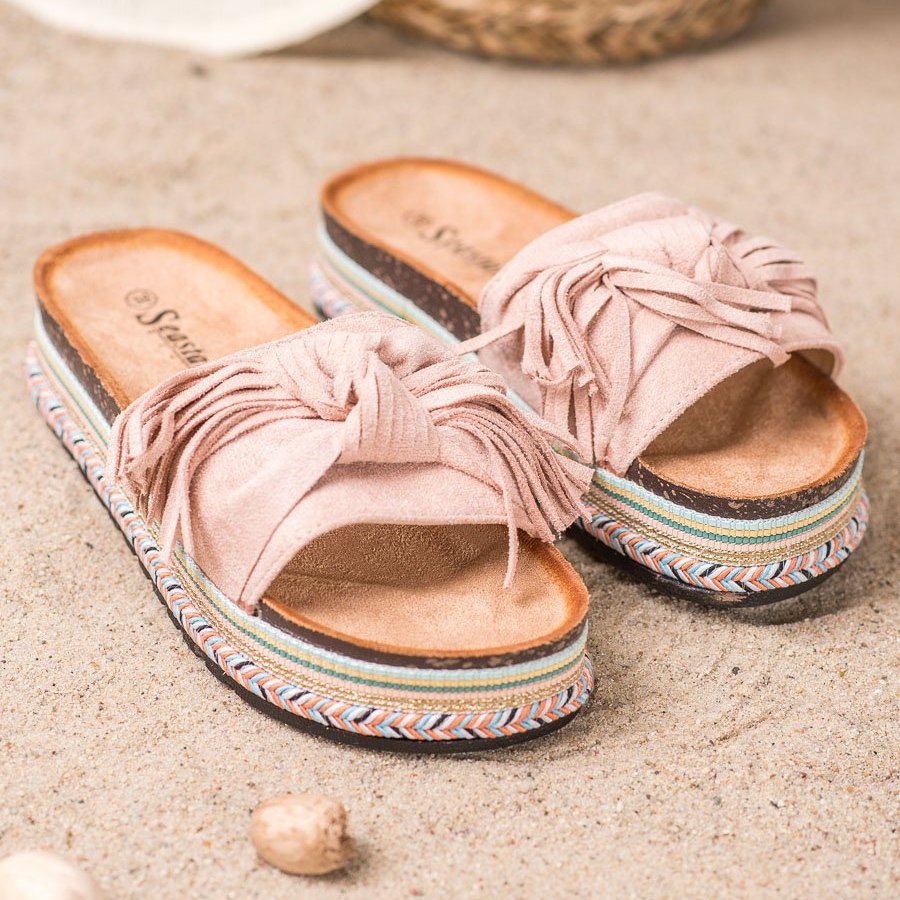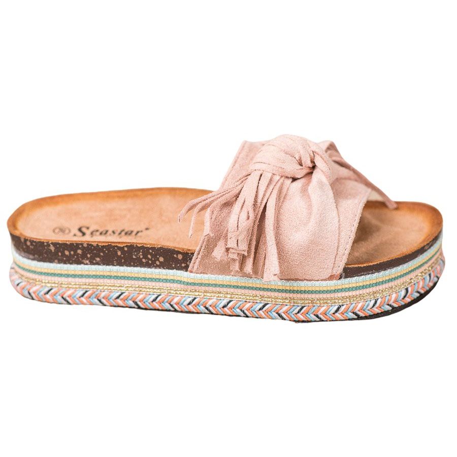 An additional advantage of this model is the fringes and bow, which give the flip-flops a fashionable accent, attracting attention and diversifying every styling. Perfect for holiday walks, the beach or meetings with friends, Seastar Flip-flops with Fringes Pink are a must-have in your summer wardrobe.