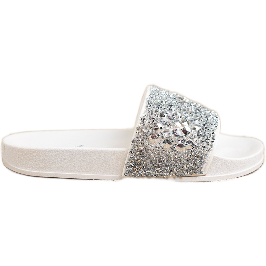 SHELOVET Flip-flops with decorations white silver – Comfort and Elegance in Every Step