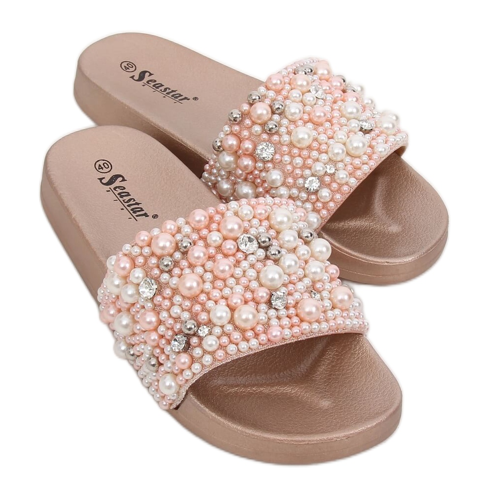 Inna marka Slippers with pearls champagne BG66 Champagne pink multicolored