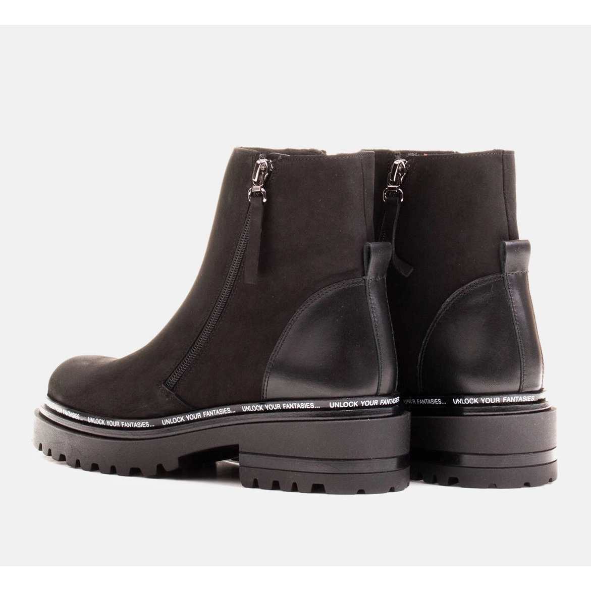 Discover elegance and comfort in every step with Marco Shoes women's ankle boots. These smooth, black ankle boots are distinguished by their original, thick sole, which gives them a modern character. Made of high-quality, natural suede leather, they guarantee not only a stylish look, but also durability and comfort of wearing.