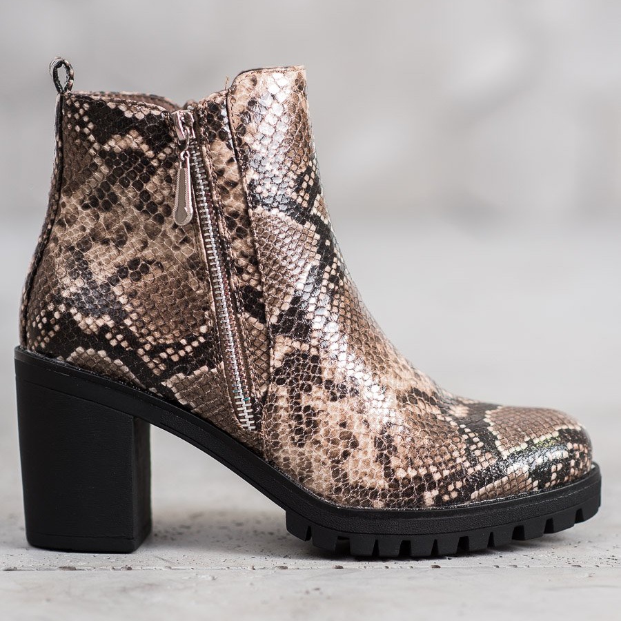 Discover elegance and style in every situation with the brown multicolor Snake Print platform ankle boots from Seastar. These unique women's ankle boots combine modern design and comfort, making them the perfect choice for every occasion - both everyday and evening outings. Made of high-quality ecological leather, they offer durability and comfort.