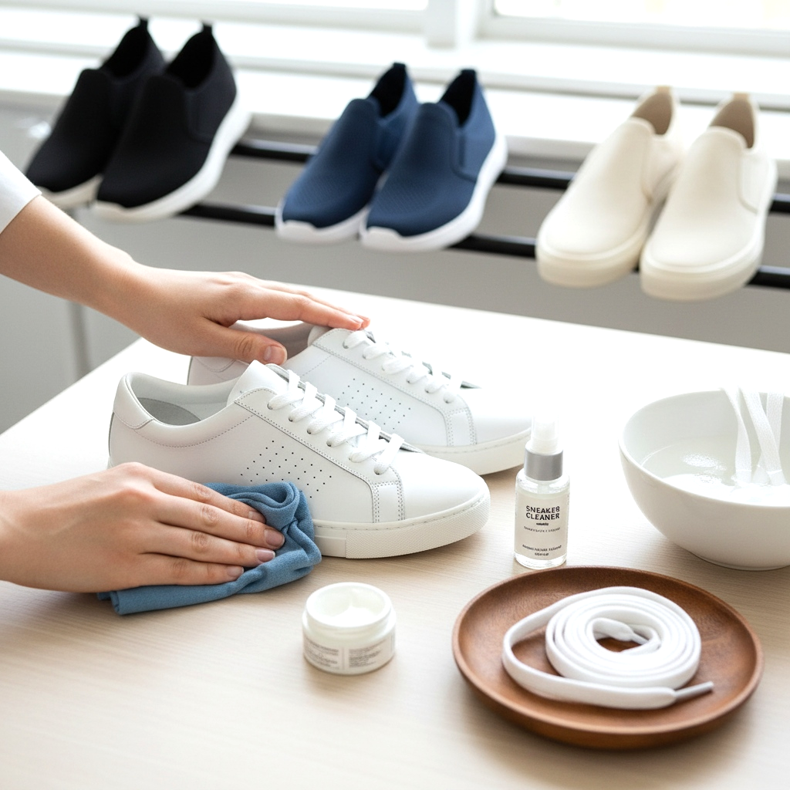 Sneakers worn to work every day require regular care. White models lose their fresh look especially quickly, so it's worth knowing a few tricks. The most important thing is regular cleaning - wipe your shoes with a damp cloth after each use. A gentle shoe cream or a special cleaning agent will work great to remove dirt from the leather.