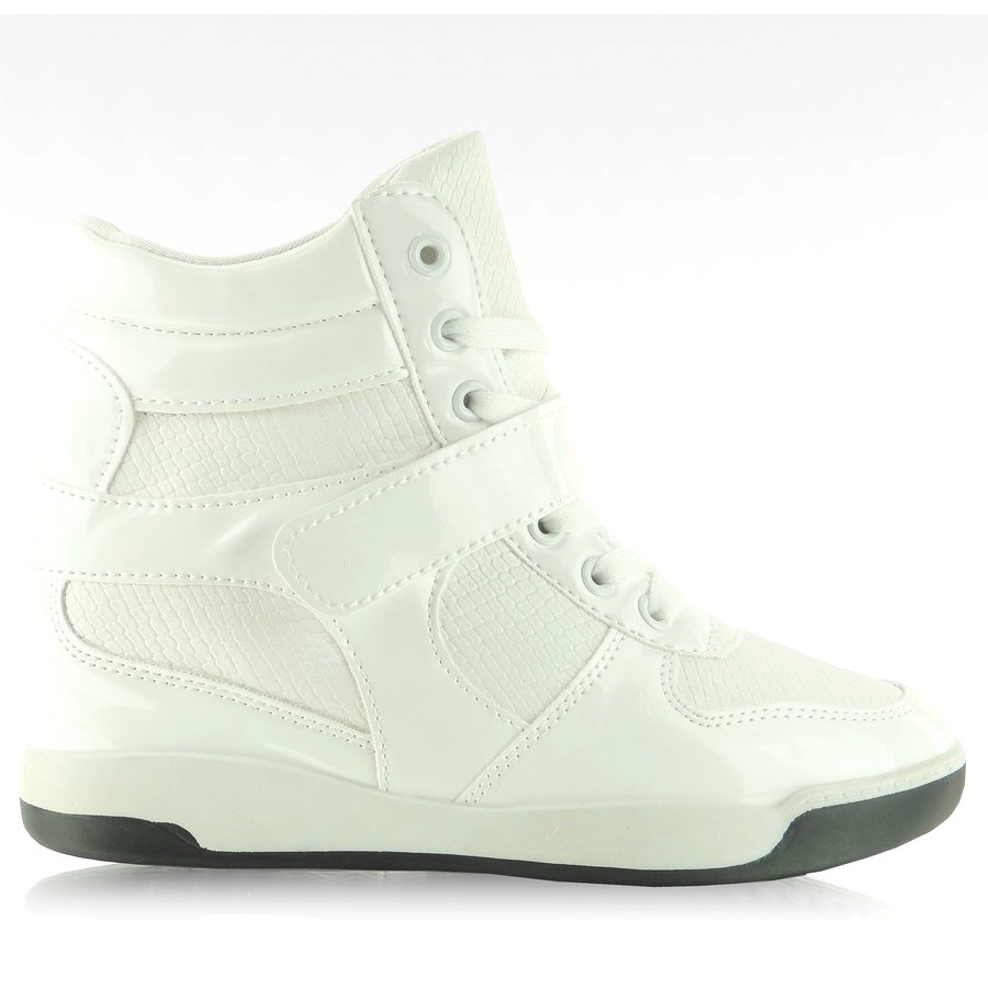 Move Your feet BKA-84 sneakers - white, stylish and light model, combining an elegant lacquered texture with a subtle snakeskin motif. A contrasting white insert in the sole adds freshness and visually relieves the figure. The shoes are soft, very light, and the high wedge of 6 cm gives additional height while maintaining comfort.