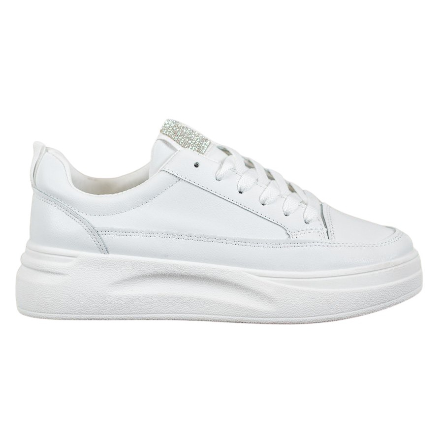 SHELOVET sneakers are the perfect choice for women who value both comfort and a fashionable look. Made of high-quality leather-like material, these white shoes are sure to attract attention thanks to their subtle zircon decorations.