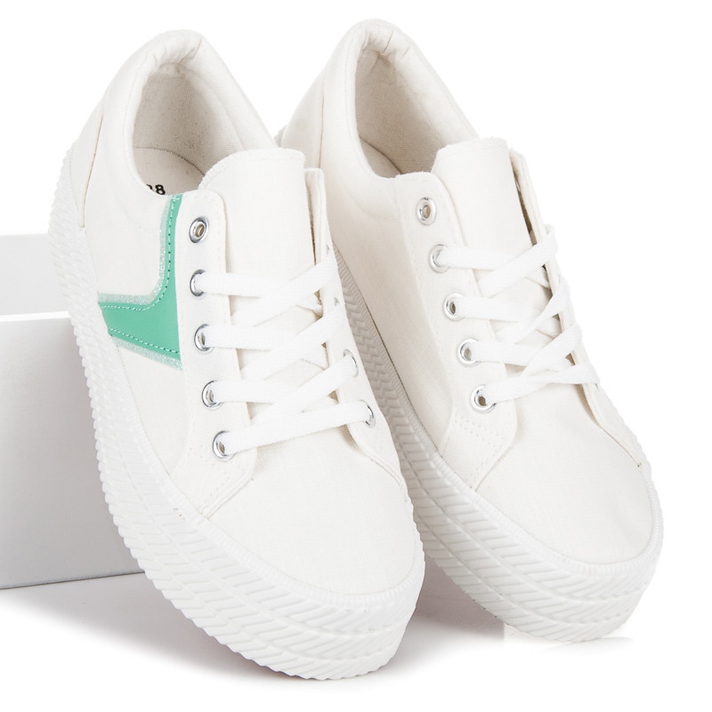 The light green stripe on the side gives them a fresh and modern character, perfectly fitting into spring-summer trends. The lace-up fastening provides foot stabilization and comfort while walking, and the soft heel counter ensures a proper fit.