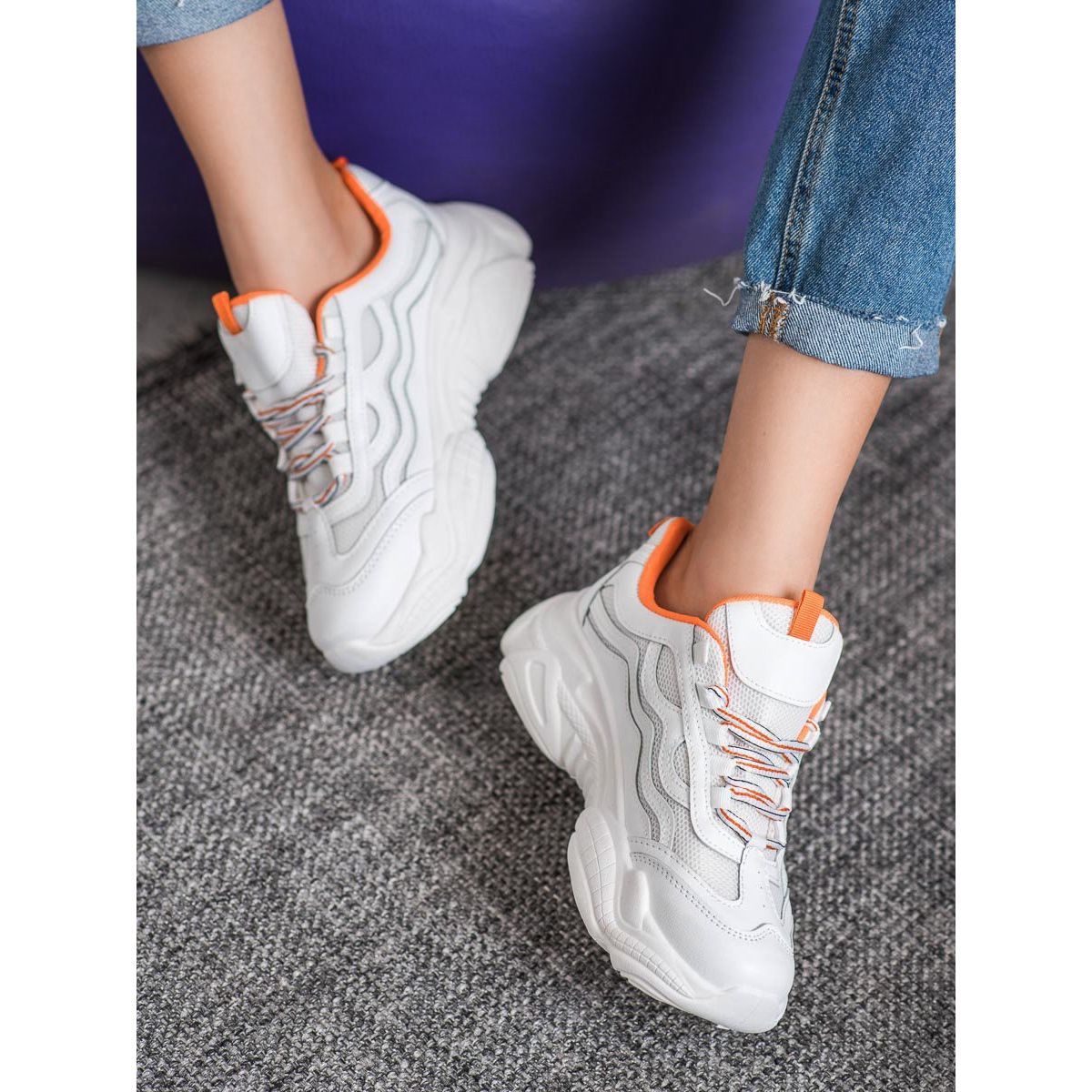 SHELOVET sneakers are available in white, which matches many different styles, both casual and more elegant. Their universal look makes them a great addition to any wardrobe.