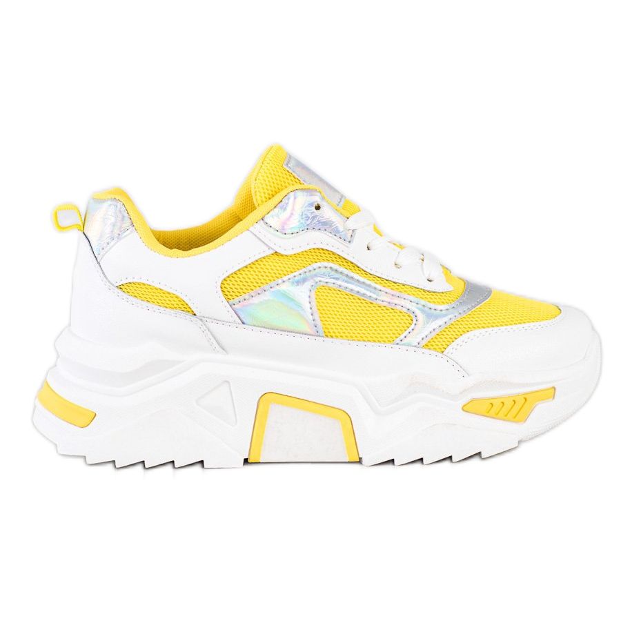 Discover the latest model of platform sneakers from the SHELOVET brand, which perfectly fits into the latest fashion trends! These stylish shoes, in white, silver and yellow, combine sporty character with a touch of elegance, making them an ideal choice for both everyday and more casual outings.