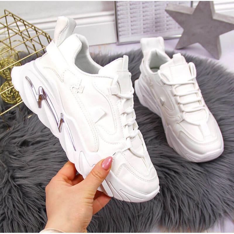 Sneakers on the Potocki platform in WOL54 - white, stylish and comfortable shoes every day. The classic, low -profile cut with a slightly elevated platform (about 4 cm) makes the silhouette look subtly slimmed, and at the same time comfort and stability when walks around the city.