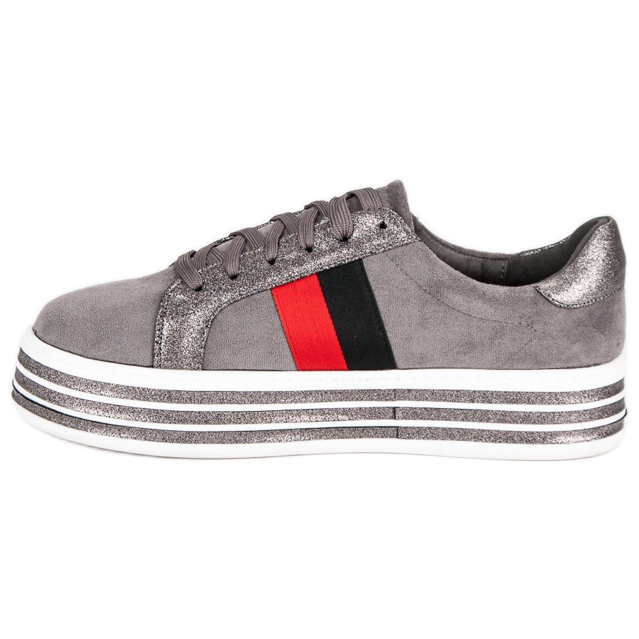 Are you looking for footwear that combines comfort with a fashionable look? VICES platform sneakers in grey are a great choice for every woman who wants to emphasize her original style in everyday combinations. Thanks to colorful and shiny details, these shoes are sure to attract attention and become an attractive complement to your wardrobe.