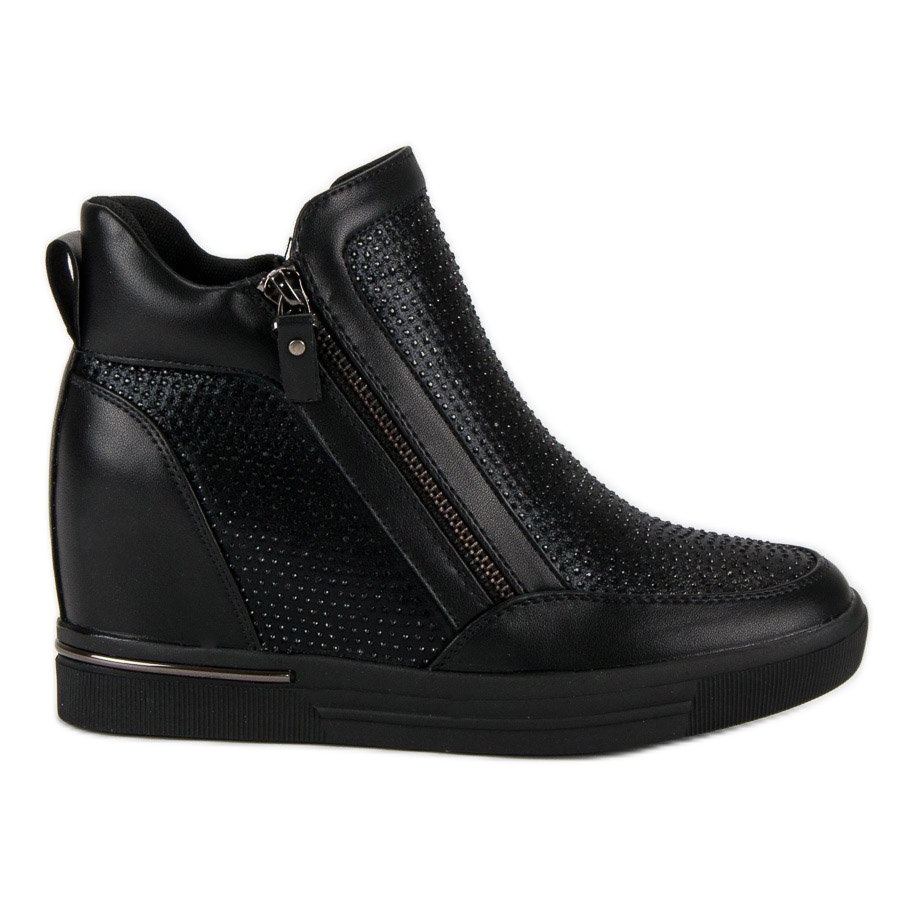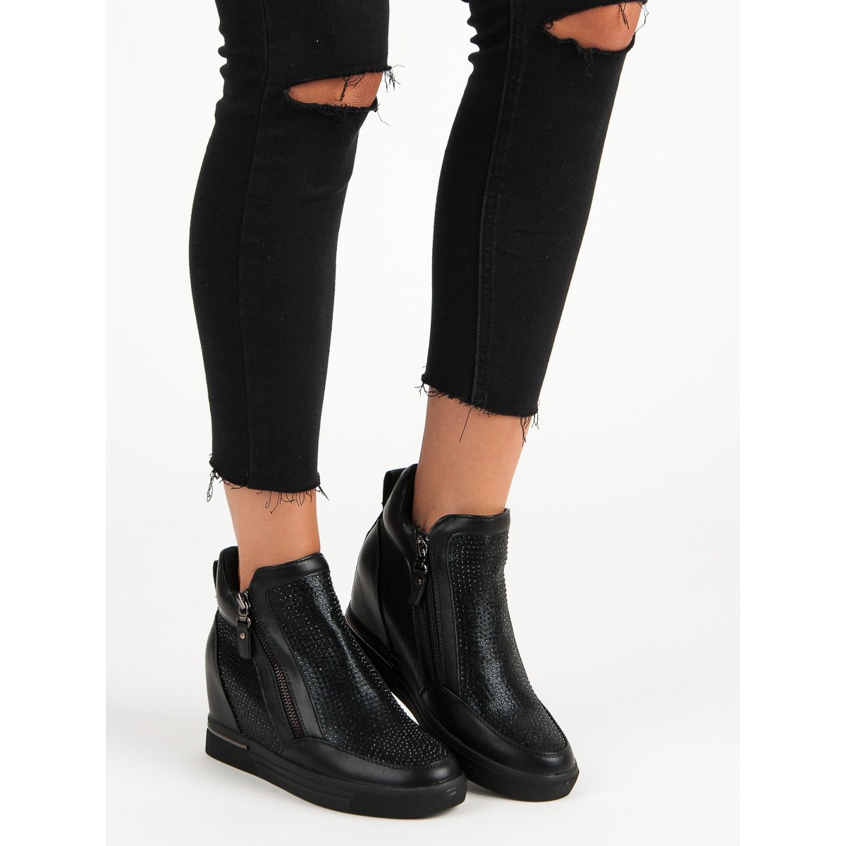 Black zipper sneakers are a great choice for women who value both style and comfort. These elegant shoes, fastened with a zipper, stand out with decorative crystals that give them a chic look. With a high 7.5 cm heel and a hidden 2.5 cm platform, these sneakers offer not only a leg-lengthening effect, but also stability and comfort.