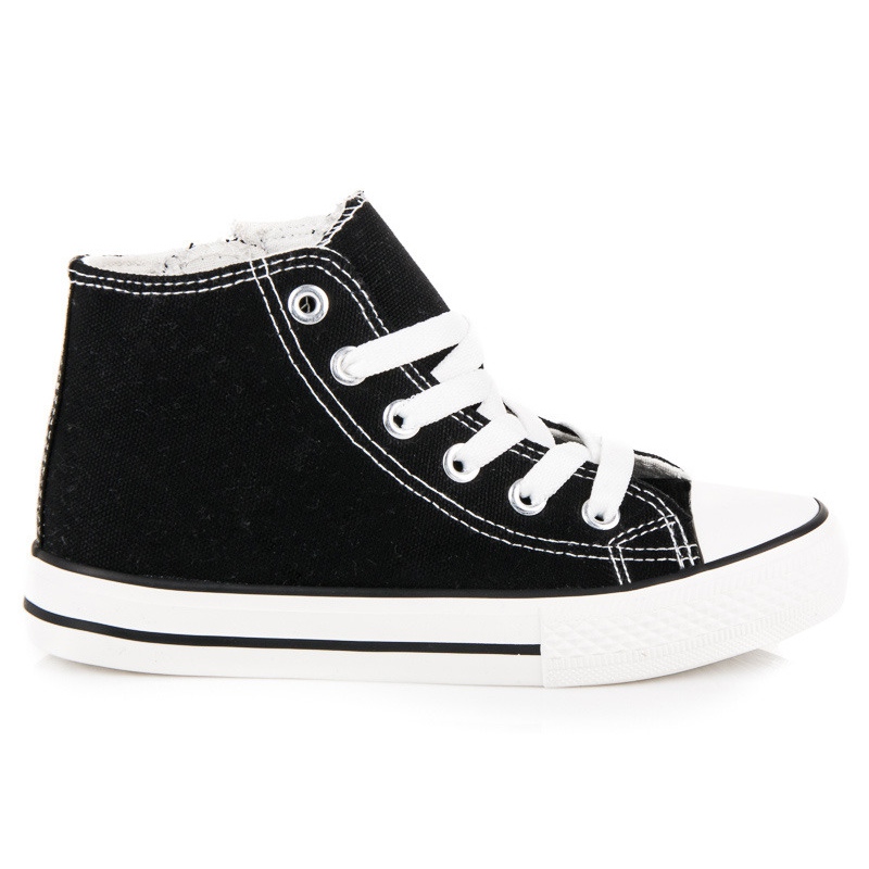 Classic, universal high-top sneakers in black - perfect for boys and girls. A combination of comfort and practicality: the high cut ensures stability, and the zipper makes it easy to put on quickly. The laces allow you to adjust the shoe to your foot, and the stiff heel counter improves stability while playing.