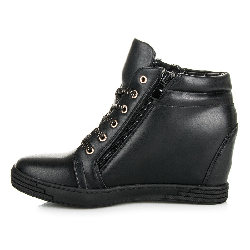 The classic black color makes them suitable for many styles - from casual to more elegant. The round toe ensures comfort of wearing, and the lace-up fastening and additional zipper give them a modern character and make them easier to put on.