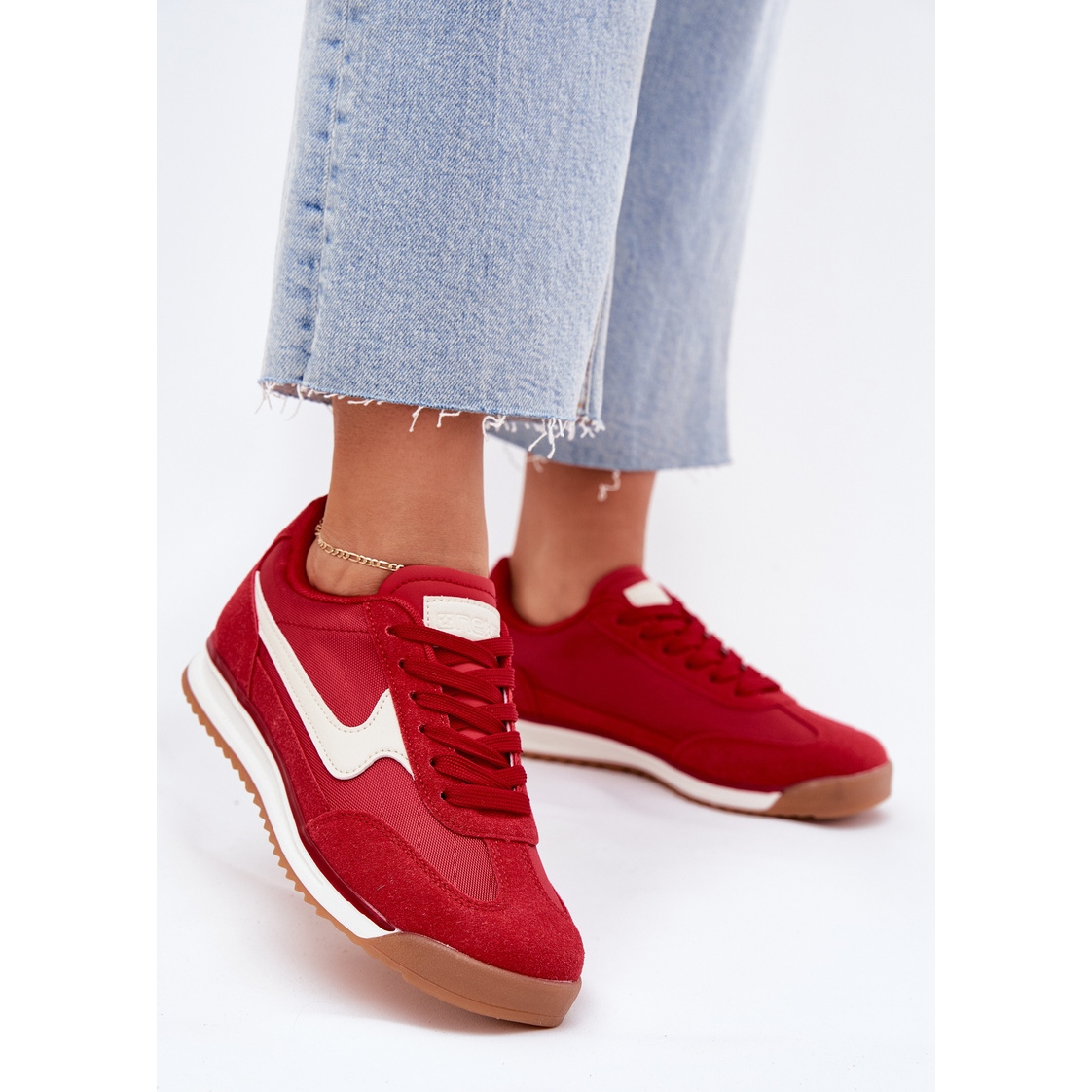 Sneakers Sneakers Sneakers Evento in an intense red and black color is the perfect choice for active women who value both style and comfort. Made of a combination of ecological leather and textile material, they provide excellent ventilation and strength. Their lightweight design makes them perfect for daily walks, jogging or casual meetings with friends.