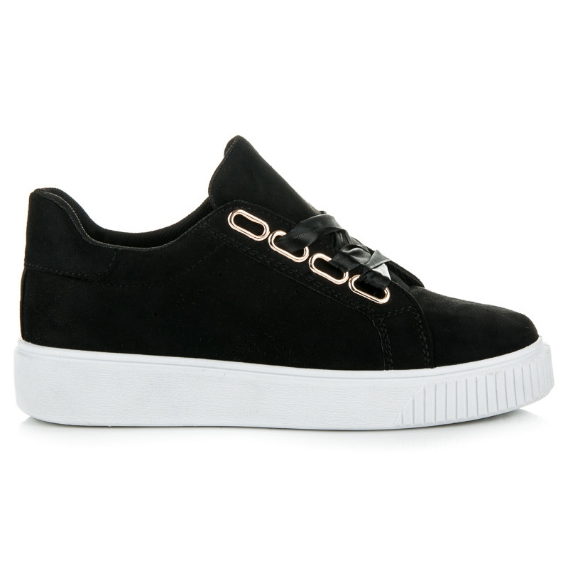 Equipped with a practical lace-up fastening, these sneakers can be easily adjusted to your individual needs. The 3 cm platform height adds lightness and subtle elegance, while the black color makes them a universal addition to many styles - from casual to more elegant.