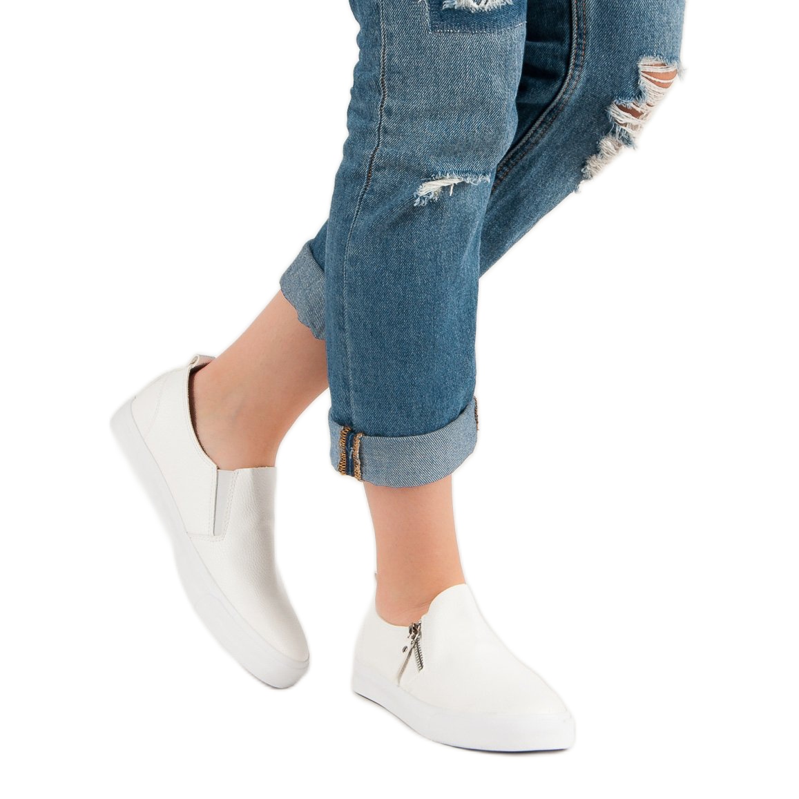 Discover the white sneakers with a zipper from Inna Marka, which are a perfect combination of style and comfort! These extremely fashionable women's shoes are perfect for everyday styling, offering both comfort and modern design.