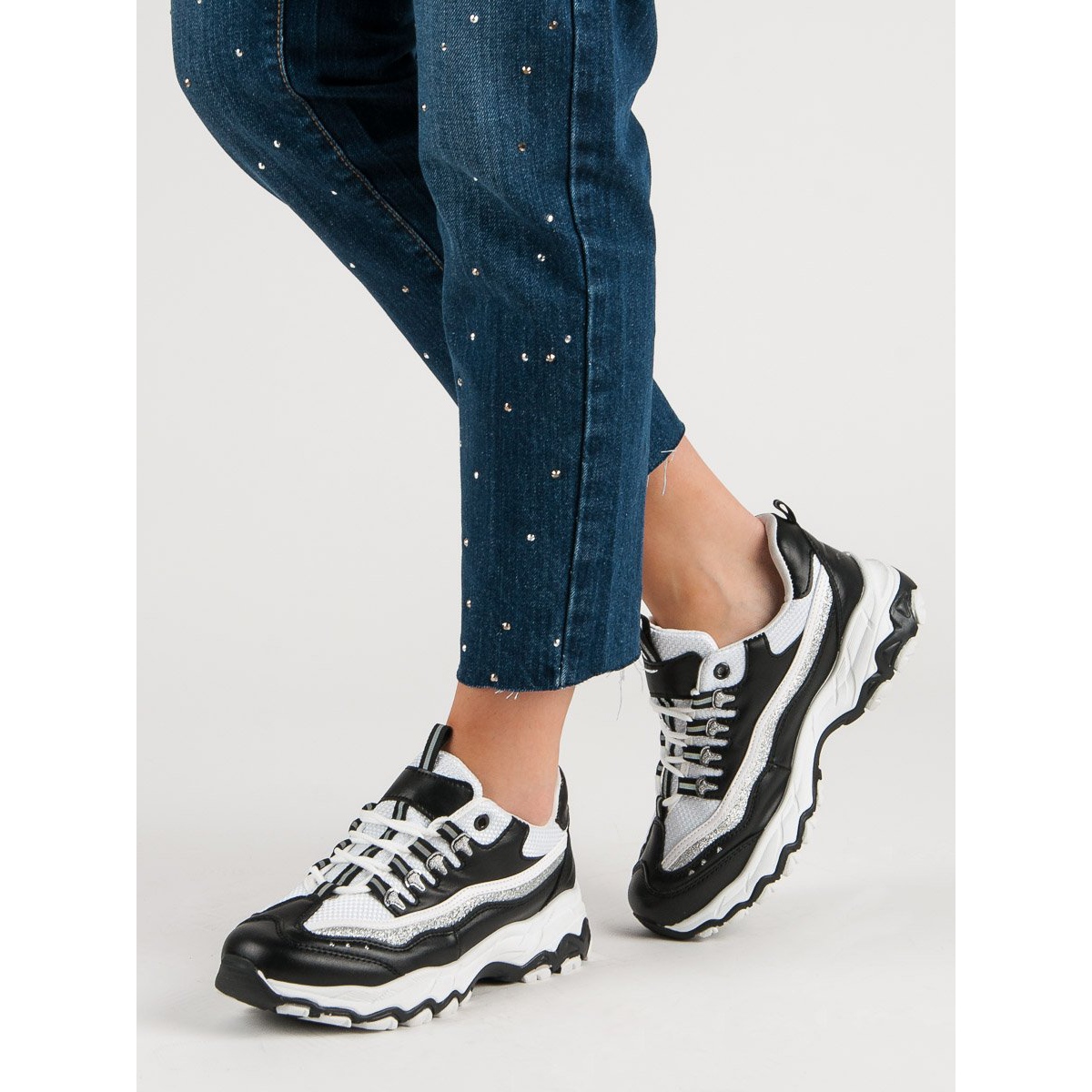 Glitter Sneakers in white and black are a must-have in every woman's wardrobe! These spectacular shoes combine classic design with modern accents, making them the perfect choice for any occasion. Black and white colors are a timeless duo that makes sneakers fit perfectly with various styles, from sports to casual.