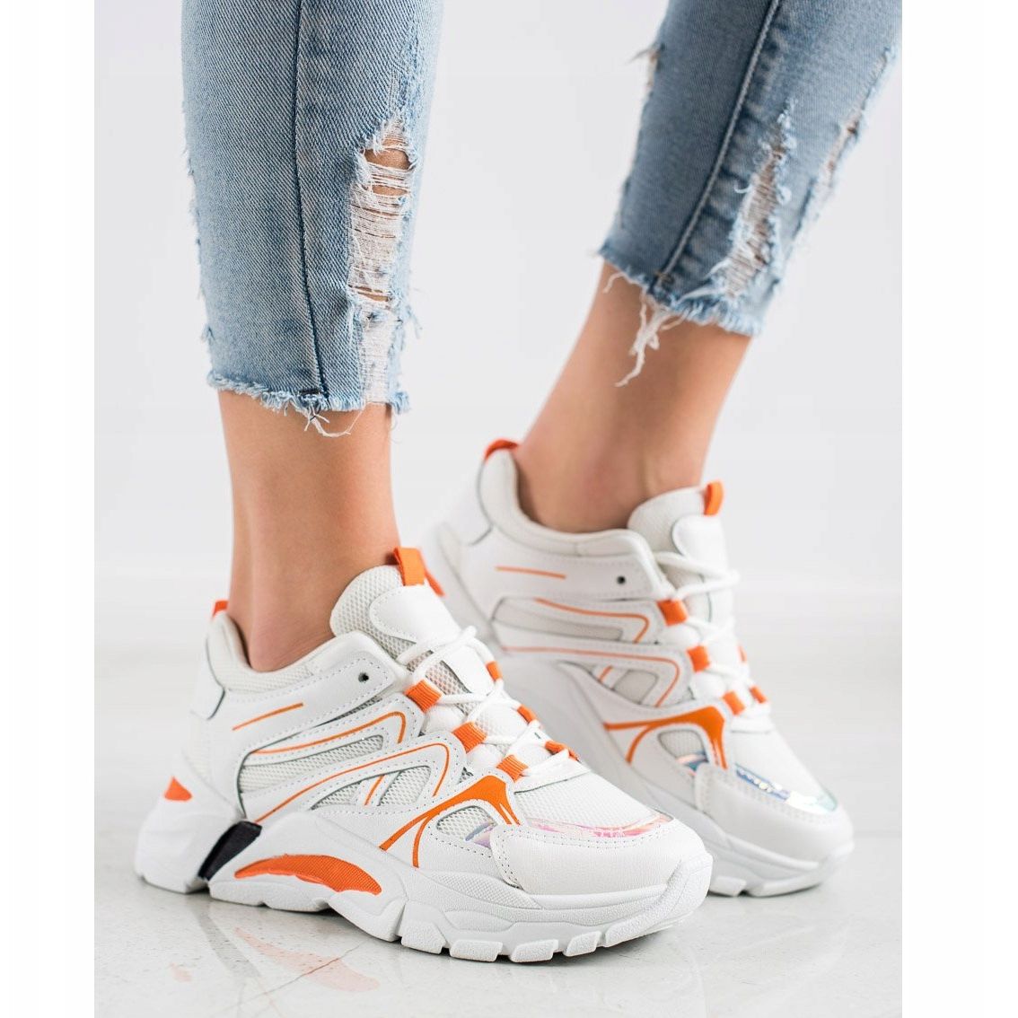 SHELOVET Sneakers in white/orange are the perfect choice for any season, from spring to winter. Their sporty and fashionable design makes them easy to fit into various styles, adding character to them. May your days be full of style and comfort with this unique model from SHELOVET!