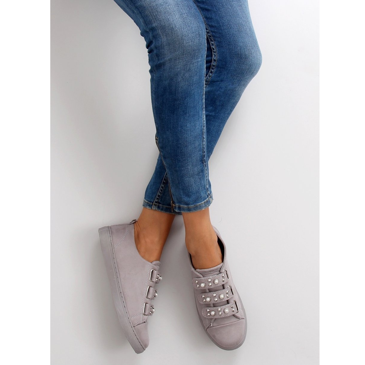 Stylish women's sneakers L1078 in a shade of gray are a great choice for every fashionable woman. Made of thick, high-quality eco-suede, they combine elegance with everyday comfort. These low sneakers stand out not only for their comfortable wear, but also for their original Velcro fastening, which has been decorated with subtle pearls.