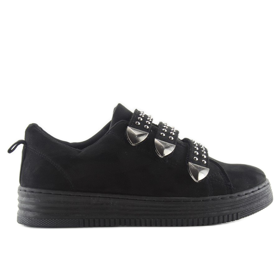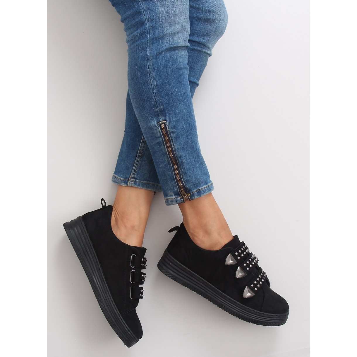 The 16-582 Black studded sneakers are the perfect choice for women who value fashion and everyday comfort. Made of eco-suede, these black sneakers stand out not only for their stylish design, but also for their practicality. Fastened with Velcro straps, they allow for quick and easy putting on and taking off.