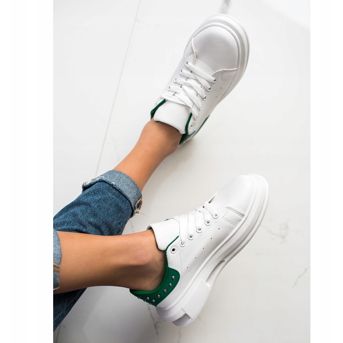 Details: SHELOVET Sneakers With Studs white green
