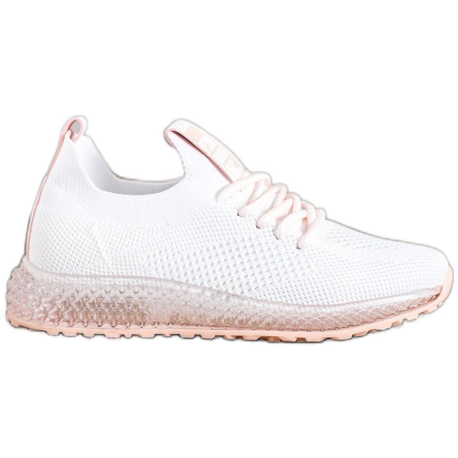 SHELOVET Sneakers with a Transparent Sole in white are a great choice for women who value comfort and style. These classic women's sports shoes are made of high-quality white fabric, which perfectly matches various styles. The upper is characterized by a subtle, embossed pattern, which gives the shoes an elegant and fashionable look.