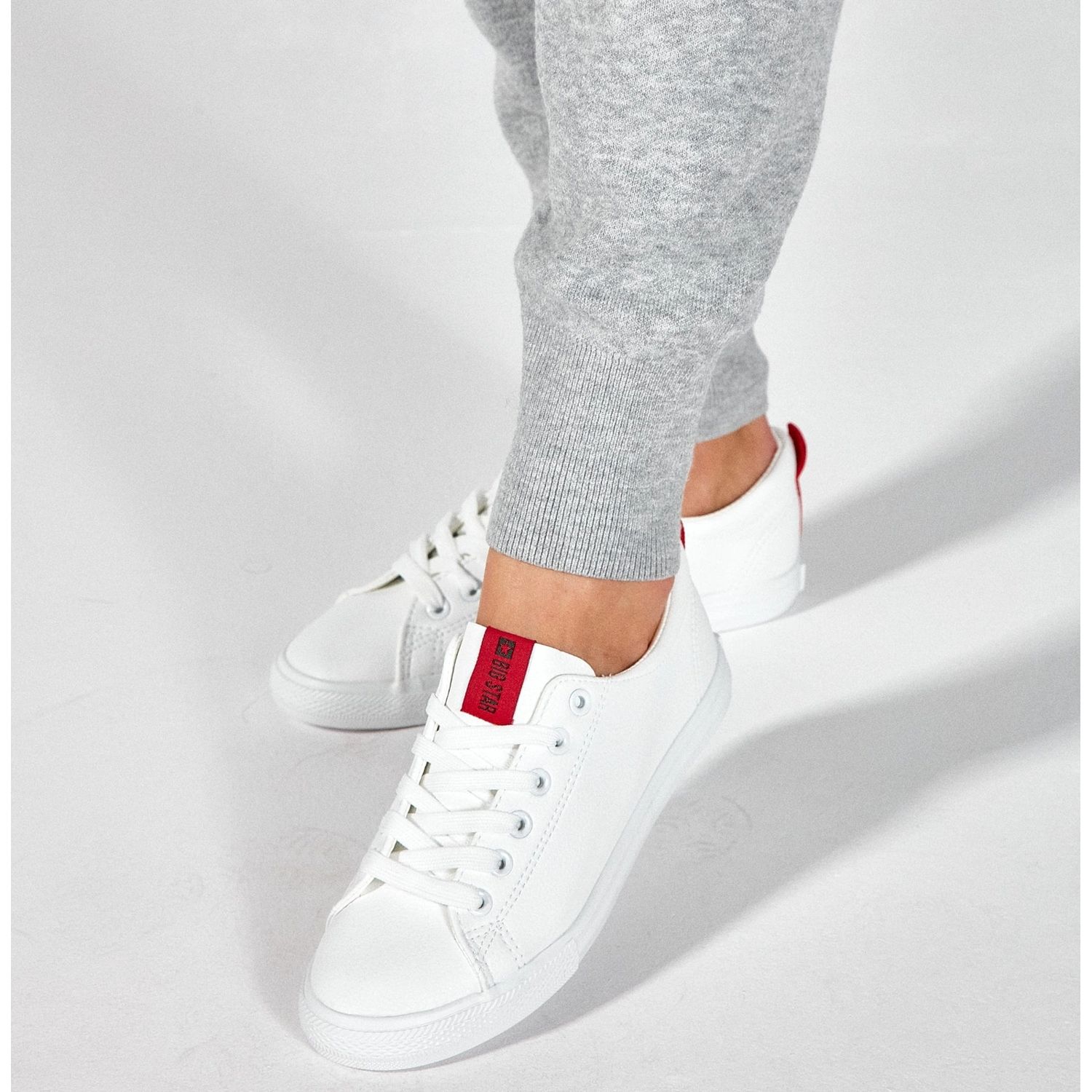 Sneakers women's shoes big star dd274685 in white is the perfect choice for women who value comfort and fashionable appearance. Their upper made of high -quality material makes the shoes not only stylish, but also durable. The rounded nose further emphasizes the elegant and modern design, which goes perfectly with various stylizations - both casual and more formal ones.