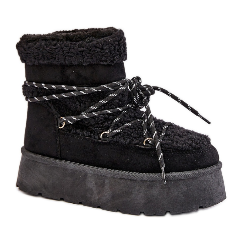 Snow boots HY867 in black are a great choice for women who value fashionable appearance and comfort. These high shoes, with a upper of 16 cm and a 5 cm platform, combine style and functionality, making them an ideal solution for winter days.
