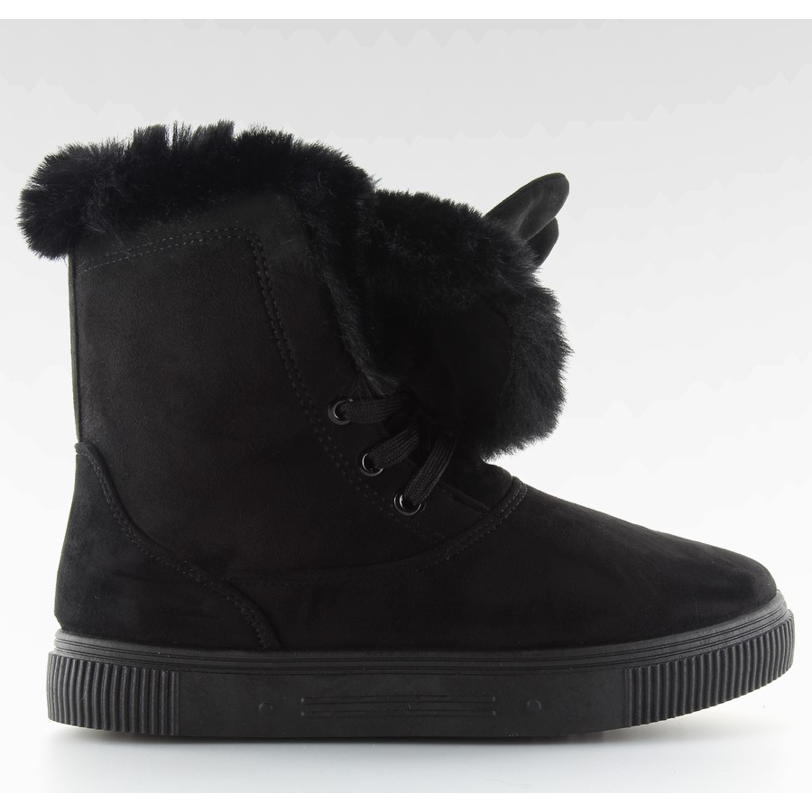 DD38 black snow boots with ears - charming, warm and practical boots that will add character to winter stylings. Small "ears" on the tongue give them an original, fun look - you can wear them in two ways: with the tongue rolled out, when the ears are visible, or lace up the shoes and hide them, obtaining a classic, subdued style.