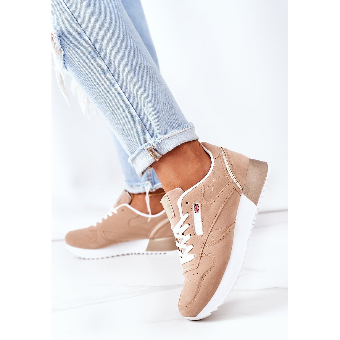 Thanks to the use of synthetic material in the sole and fabric as an insole, the shoes offer adequate cushioning and support during each step. The beige color makes the sneakers universal and can be easily combined with various wardrobe elements.