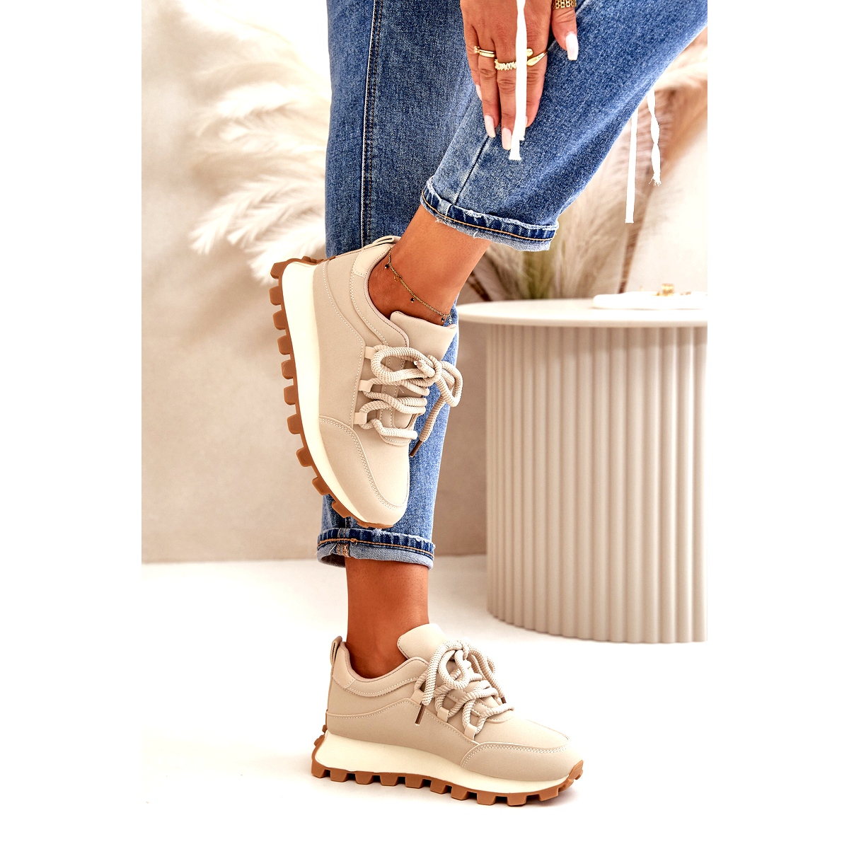 Inna marka Sports shoes: Sneakers on a platform made of eco-leather, beige