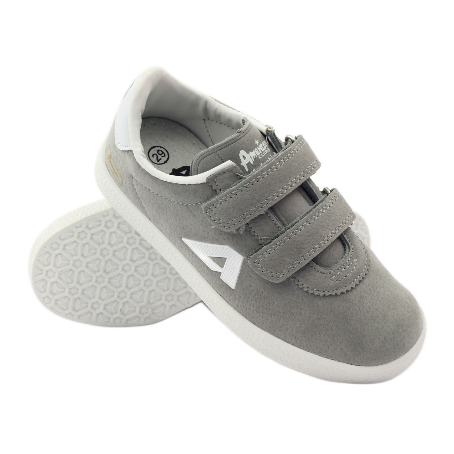 American Club sports sneakers model 2952 are the perfect choice for active boys. Made of high-quality ecological suede leather, they provide not only an aesthetic appearance, but also durability and comfort of wearing. Gray footwear with white elements attracts attention with its modern design, which will certainly appeal to the youngest.