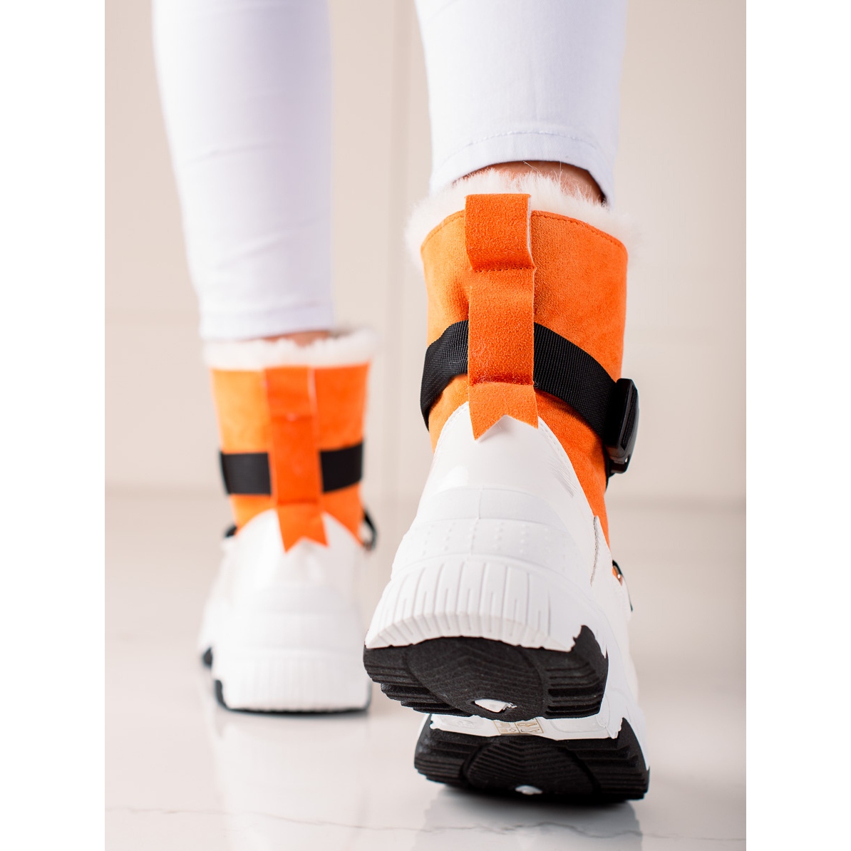 Discover exceptional style and comfort during winter days with TRENDI sporty snow boots in an attractive combination of white and orange! These women's sports ankle boots are a perfect combination of fashionable look and functionality, making them a great choice for everyday wear in the autumn and winter.