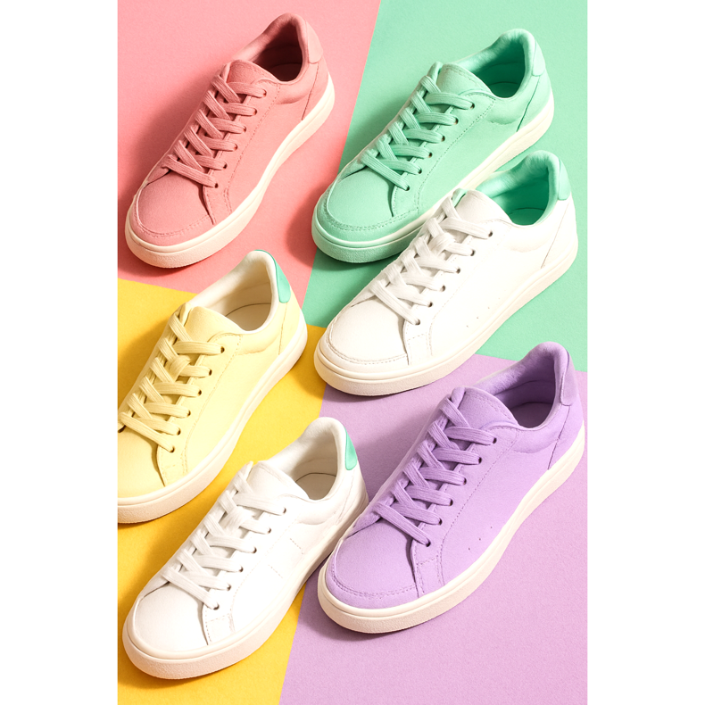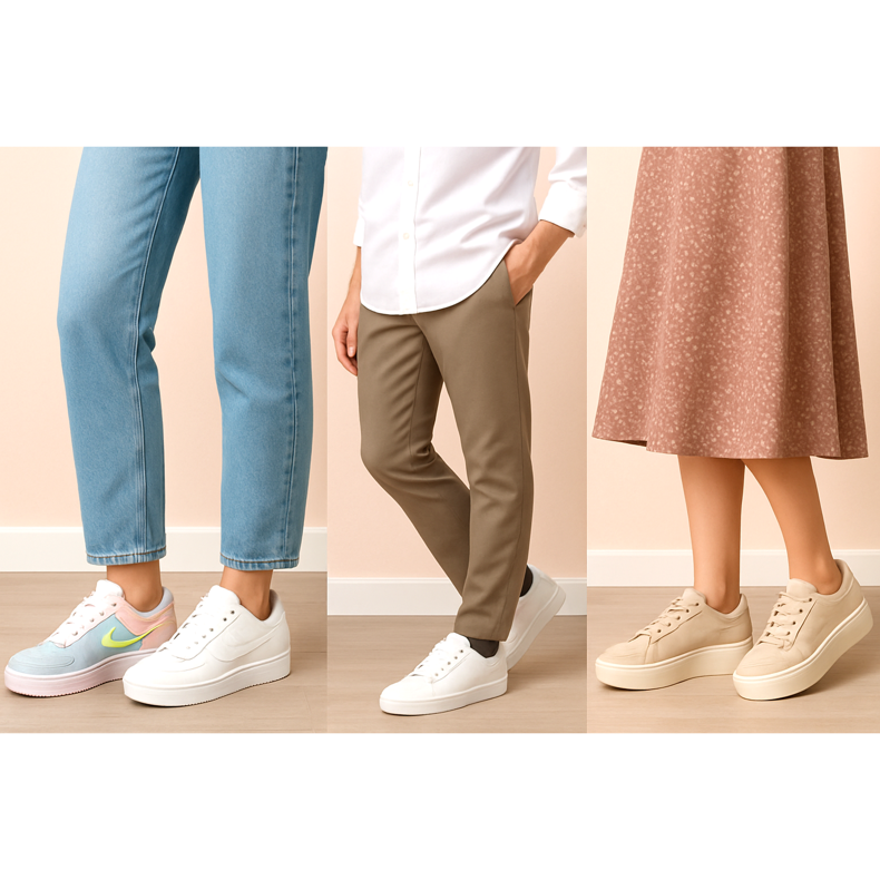 The spring palette of sneakers colors in 2025 is a real reflection of the optimism and the freshness of the new season. Delicate pastels dominate - powder pink, mint green and lavender, which blend in perfectly with spring stylizations. You can't forget about classic white, which returns in a refreshed form with subtle colorful accents. Bile in a shade of butter and warm beige are the next colors that will reign on the streets of the city.